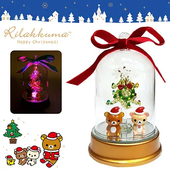 博客來e-coupon 【限量】Rilakkuma拉拉熊聖誕玻璃罩LED小夜燈玻璃樹擺飾品.裝飾品。金底座