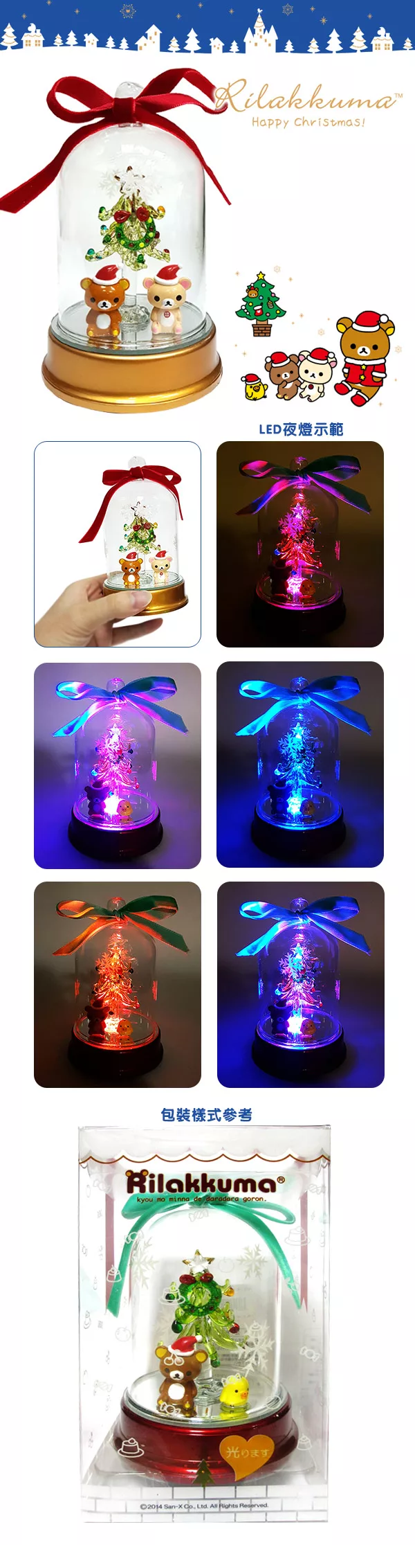 【限量】Rilakkuma拉拉熊聖誕玻璃罩LED小夜燈玻璃樹擺飾品.裝飾品。金底座![]()
